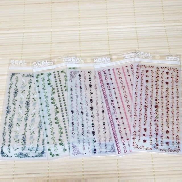 小っちゃい デコライン シール 5枚セット 70465s/赤い花 ハート 音符 クローバー プチシール