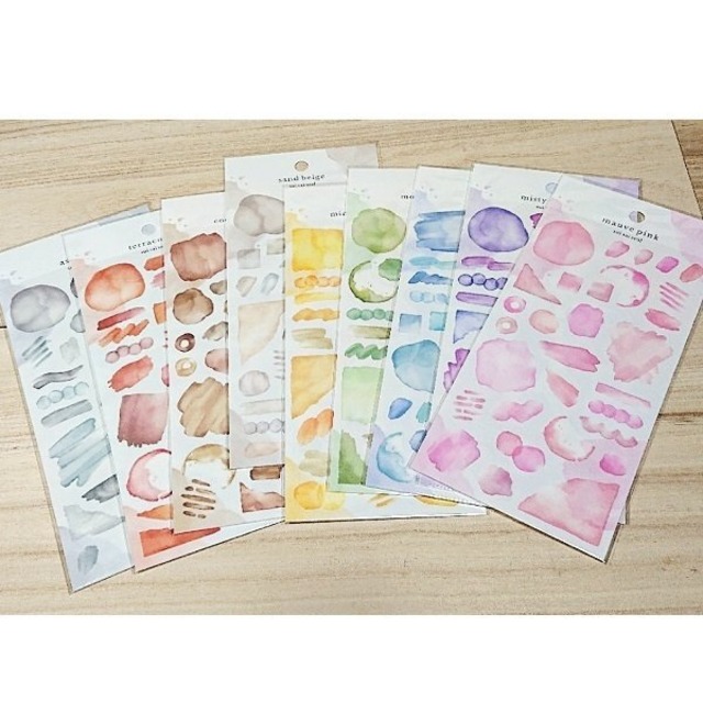透け感あり 水彩絵の具で描いたようなシール SUI SAI SEAL 9点セット/80976s 重ねて貼れるステッカー