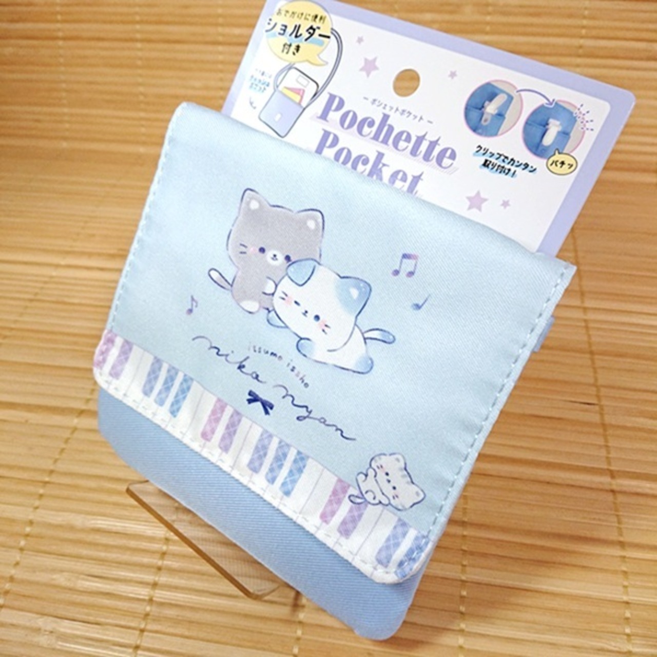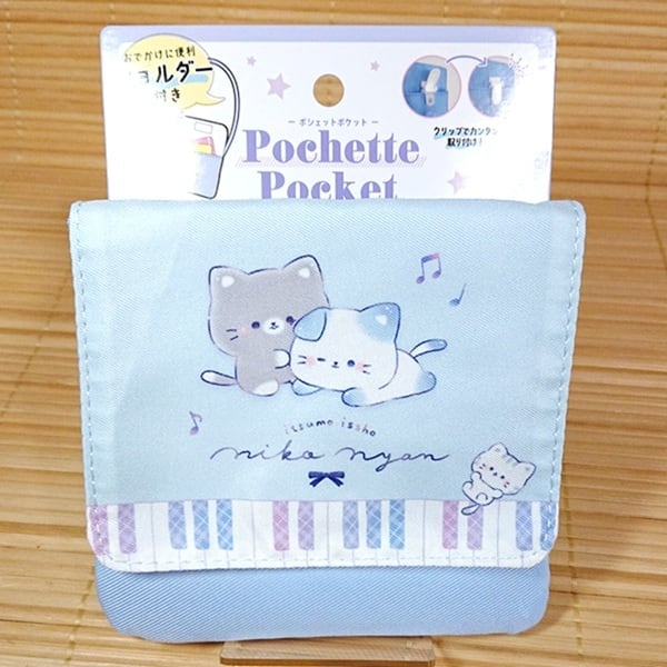 ねこ ショルダー付き ポシェット ポケット(ニコニャン)133611/クリップ付きポーチ ミニショルダー