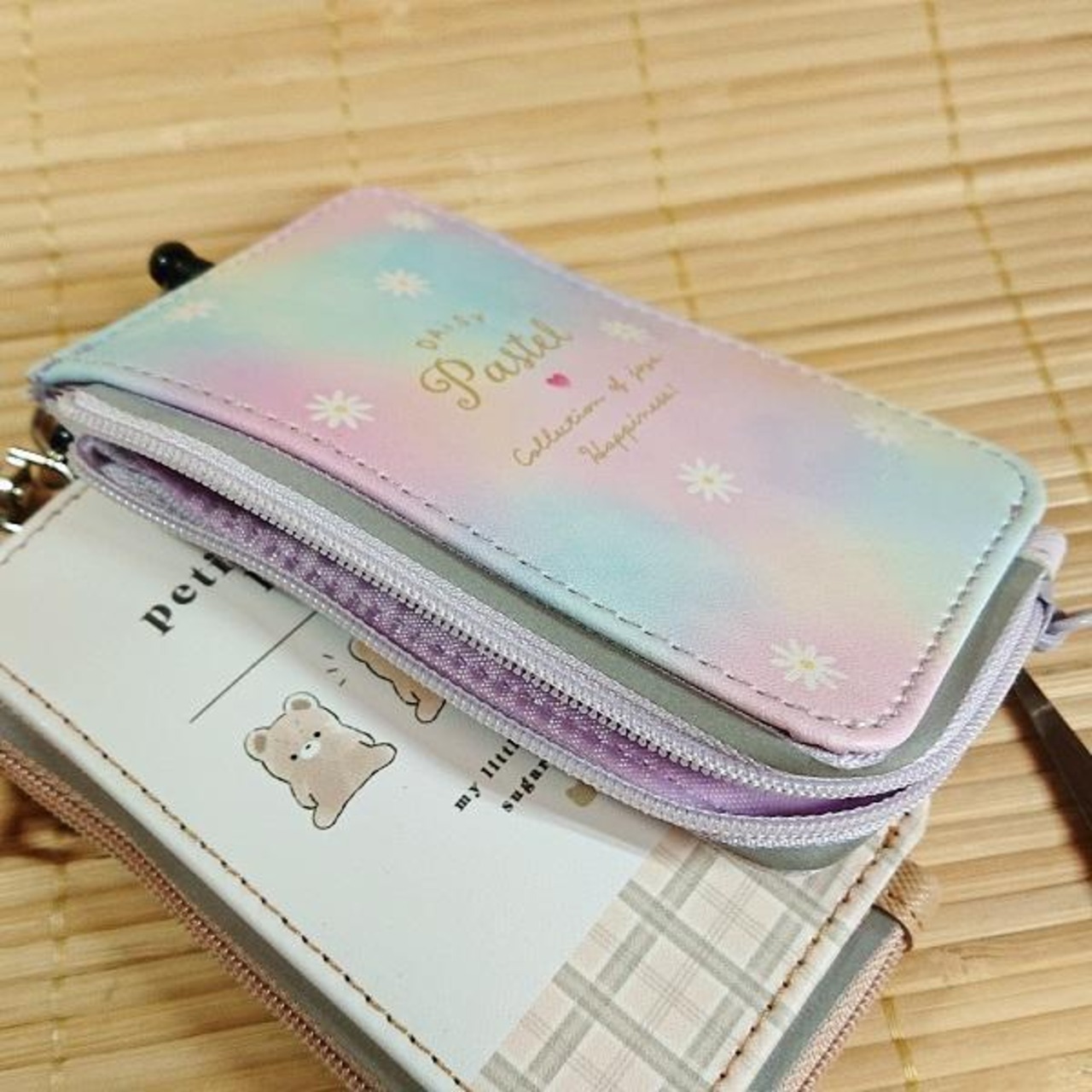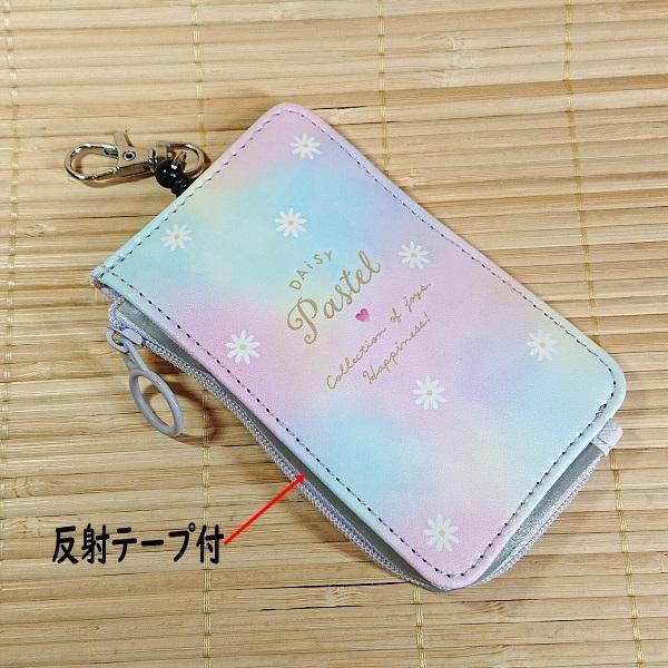 反射テープ付 パスケース付キーケース デイジーパステル/209513 ICケース入 ミニポーチ 伸びるリール式