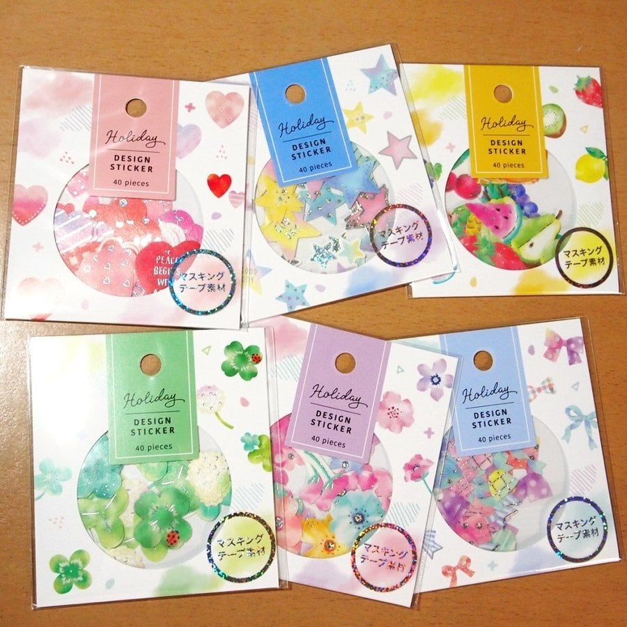 スキングテープ素材×ホログラム箔 優しいタッチのデザインのフレークシール6点セットです。