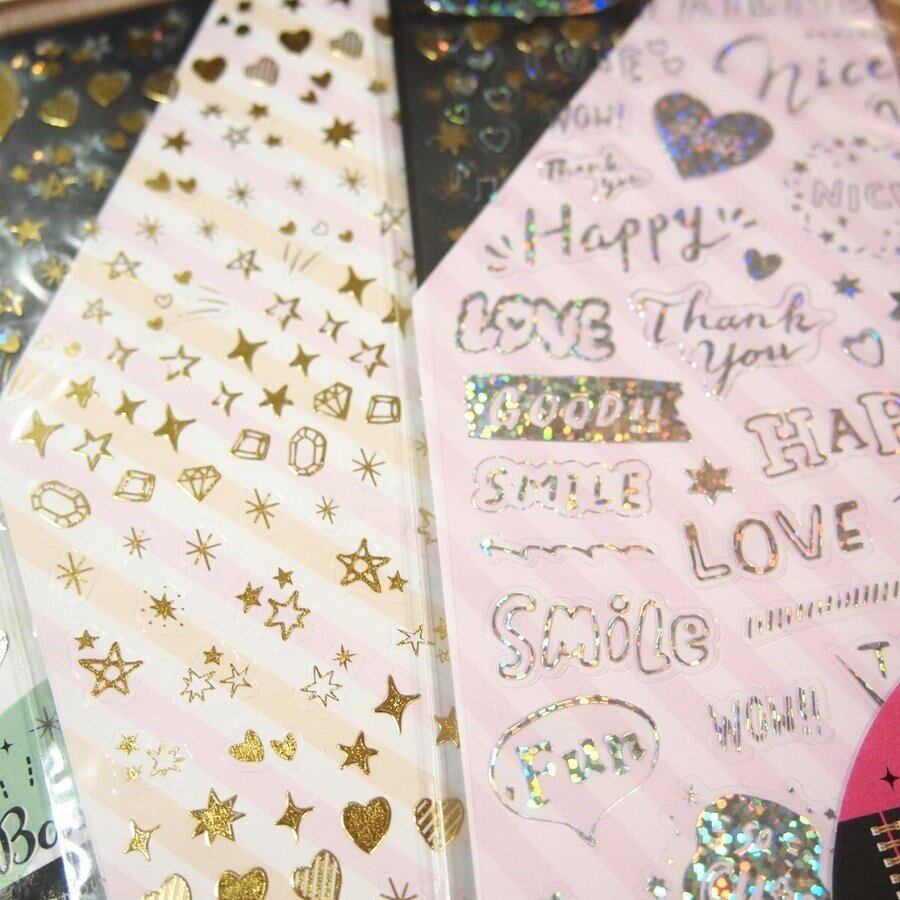 2枚重ねのキラキラ箔押しシール5点セットです。
