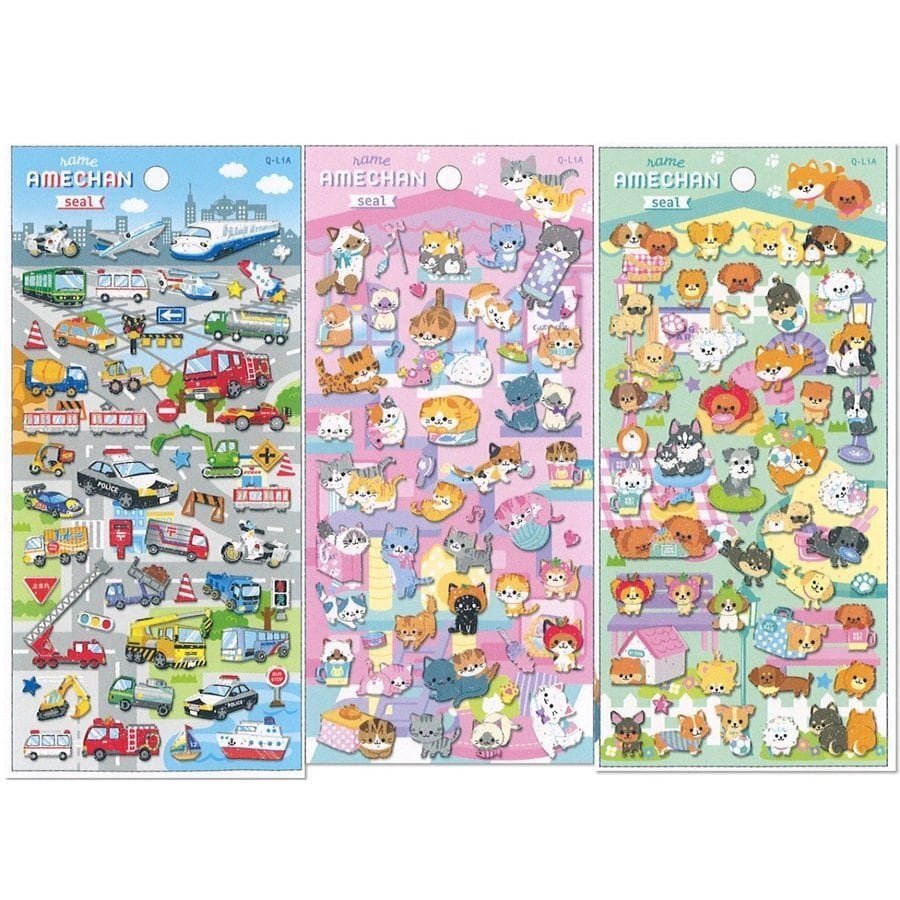 キララメ あめちゃんシール 生き物と乗り物編 5点セット/41025-5 ちょいぷっくりキャンディシール