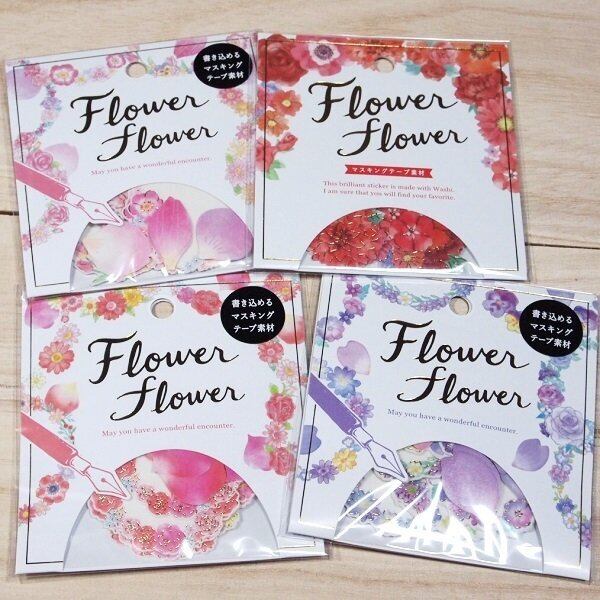 マスキング素材の可憐なお花を枠どった書き込めるシール3個+お花のシール1個のセットです。