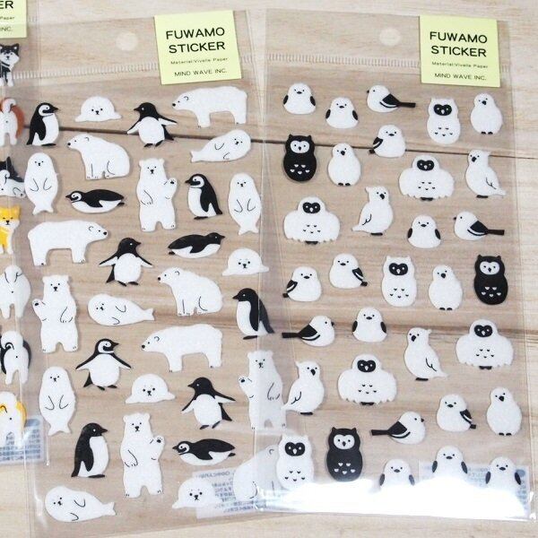 ふわふわした動物のシール フワモ ステッカー4点セット79376s/とり ふくろう しろくまぺんぎん