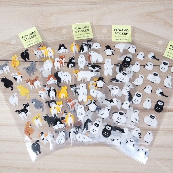 ふわふわした動物のシール FUWAMO STICKER 4点セットです。