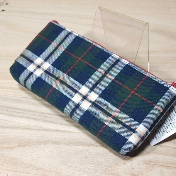 フラットタイプのペンケースです。表面はMICHIGANのロゴ入り、裏面はチェック柄になっています。