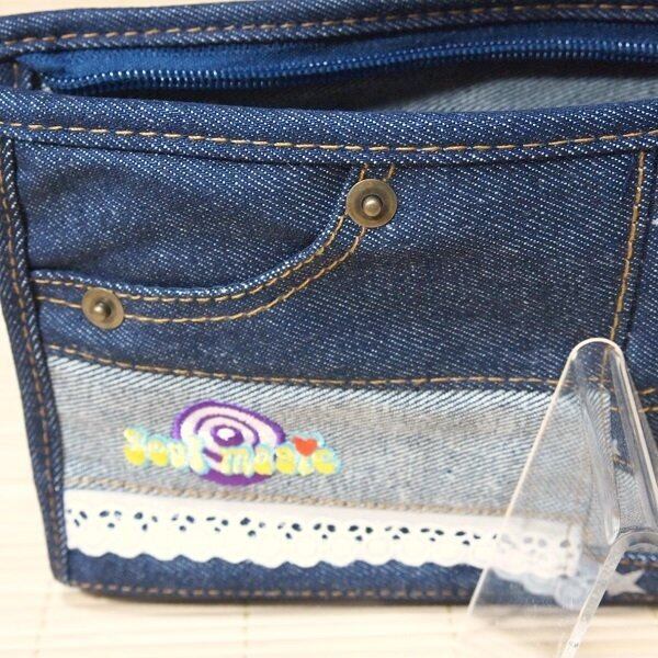 デニム素材 リメイクペンポーチです。