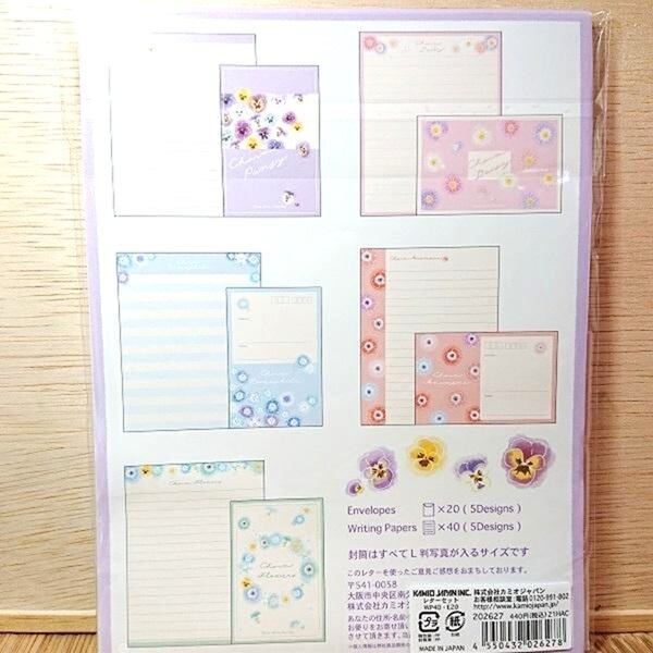 5種類の可愛いパンジーイラストのレターセットです。封筒と便箋がお揃い