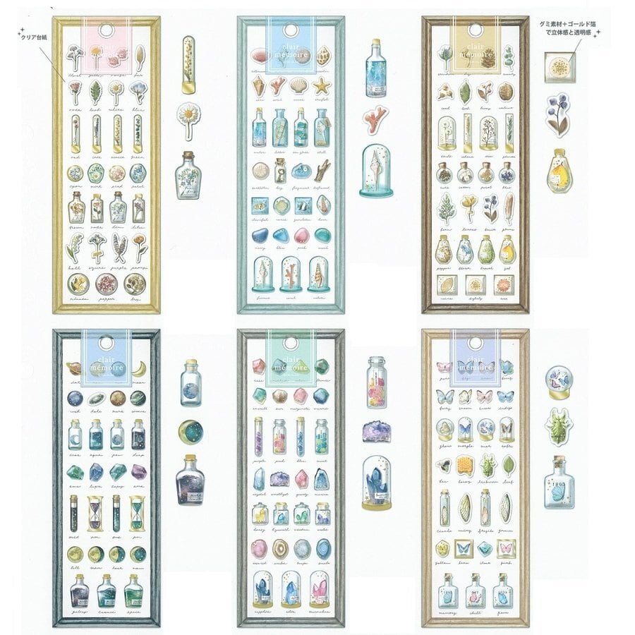 上品 透明感あり ぷっくりシール クレールメモワール 6点セット/61001s 小瓶 ハーバリウムのようなシール 金箔